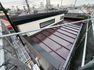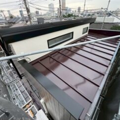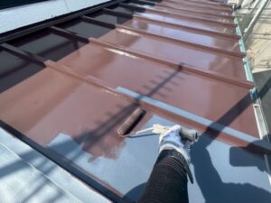 下屋根部分は瓦棒屋根になっていましたので、こちらは屋根塗装にてメンテナンスさせて頂きました。